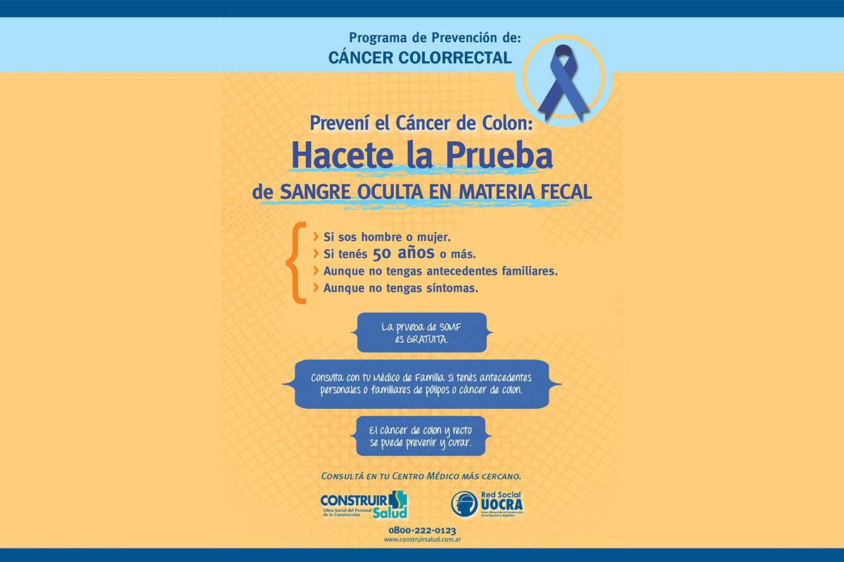 El cáncer colorrectal (CCR), puede aparecer a cualquier edad, pero es más frecuente en mujeres y varones mayores de 50 años. Sin embargo, el CCR es uno de los más factibles de prevenir y curar. Mediante los estudios de detección precoz, las posibilidades de curación son superiores al 90 por ciento.