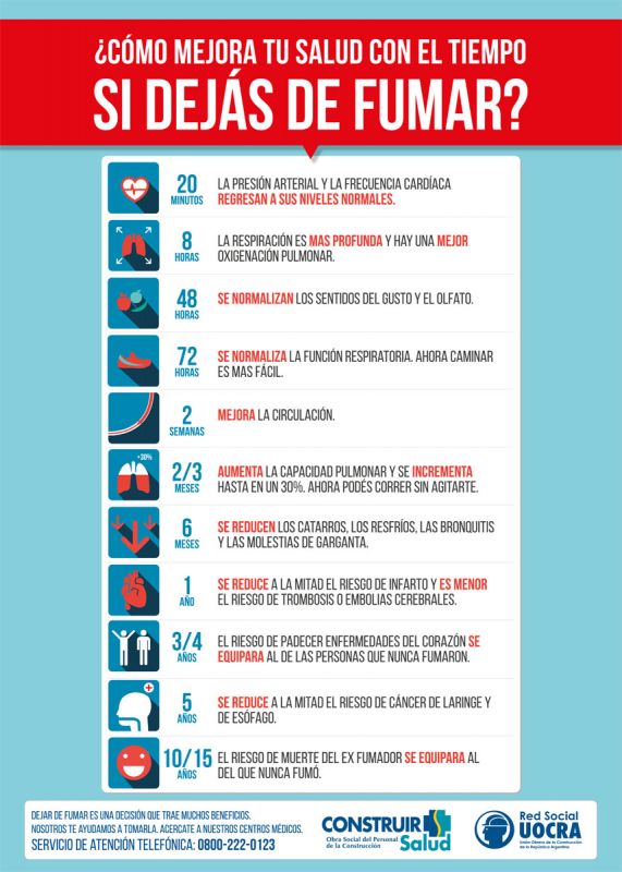 El Tabaco es la principal causa prevenible de muerte en Argentina y en el mundo. Está presente como factor de riesgo en 6 de las 8 primeras causas de muerte a nivel mundial y se estima que en el mundo fuman 800 millones de hombres, 200 millones de mujeres y que generará 300 millones de muertes en los próximos 30 años. En nuestro país es responsable de la muerte de 45.000 personas por año. Datos recientes de la 4ta Encuesta Nacional de Factores de Riesgo (ENFR) 2018 de la Secretaría de Salud de la Nación, señalan que el 22,2% de la población adulta fuma, el 21,8% está expuesta al humo de tabaco ajeno en el trabajo y el 21,5% está expuesto al humo en otros lugares públicos como ser bares y restaurantes. Tabaco y salud pulmonar Este año se centrará en las múltiples maneras en que la exposición al tabaco afecta a la salud pulmonar de las personas de todo el mundo Formas en que el tabaco pone en peligro la salud pulmonar de las personas de todo el mundo Estas son: Cáncer de pulmón. Fumar tabaco es la principal causa del cáncer de pulmón, responsable de más de dos tercios de las muertes por cáncer de pulmón en todo el mundo. - Dejar de fumar puede reducir el riesgo de cáncer de pulmón: después de 10 años de dejar de fumar, el riesgo de cáncer de pulmón se reduce a aproximadamente la mitad del de un fumador. Enfermedades respiratorias crónicas. Fumar tabaco es la causa principal de la enfermedad pulmonar obstructiva crónica (EPOC), una afección en que la acumulación de mucosidad con pus en los pulmones provoca una tos dolorosa y terribles dificultades respiratorias. - El abandono temprano del hábito de fumar es el tratamiento más eficaz para retrasar la progresión de la EPOC y mejorar los síntomas del asma. A lo largo de la vida. - Los bebés expuestos en el útero a las toxinas del humo de tabaco, a través del tabaquismo materno o de la exposición materna al humo ajeno, experimentan con frecuencia una disminución del crecimiento de los pulmones y de la función pulmonar. - Los niños pequeños expuestos al humo de tabaco ajeno corren el riesgo de agravamiento del asma, la neumonía y la bronquitis, así como infecciones frecuentes de las vías respiratorias inferiores. - A nivel mundial, se calcula que 165 000 niños mueren antes de cumplir 5 años por infecciones de las vías respiratorias inferiores causadas por el humo de tabaco ajeno Tuberculosis. La tuberculosis (TB) es una infección que daña los pulmones y reduce la función pulmonar, lo que se ve agravado por el tabaquismo. Contaminación del aire. El humo del tabaco es una forma muy peligrosa de contaminación del aire de interiores: contiene más de 7000 sustancias químicas, 69 de las cuales se sabe que causan cáncer. Aunque el humo puede ser invisible e inodoro, puede permanecer en el aire hasta cinco horas, poniendo a las personas expuestas en riesgo de desarrollar cáncer de pulmón, enfermedades respiratorias crónicas y reducción de la función pulmonar. Las personas que actualmente fuman, pueden comprometerse a no consumir más tabaco o a buscar ayuda para dejar de fumar; así, no solo mejorará su salud, sino también la de las personas expuestas al humo, especialmente los niños, así como sus familiares y amigos. Todos podemos poner nuestro grano de arena para poner fin al consumo de tabaco en el mundo de forma duradera.
