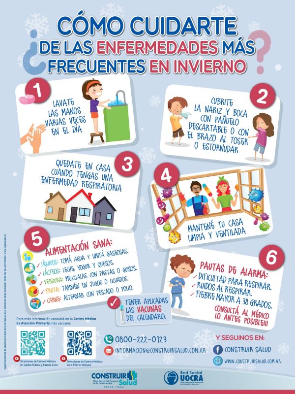Durante el invierno, aumentan los casos de enfermedades respiratorias como gripe, bronquiolitis, bronquitis y neumonía. Estas afecciones pueden afectar a toda la población, pero son especialmente peligrosas para niñas y niños menores de 5 años y para personas mayores de 65 años.