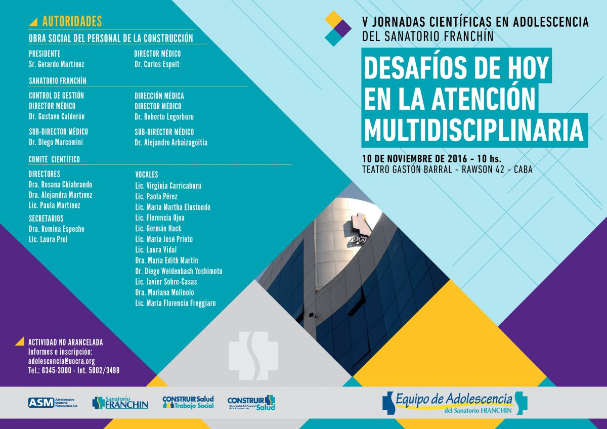 El 10 de noviembre se celebraron las V Jornadas Científicas en Adolescencia organizadas por el Equipo de Adolescencia del Sanatorio Franchin bajo la premisa "Desafíos de hoy en la atención multidisciplinaria".